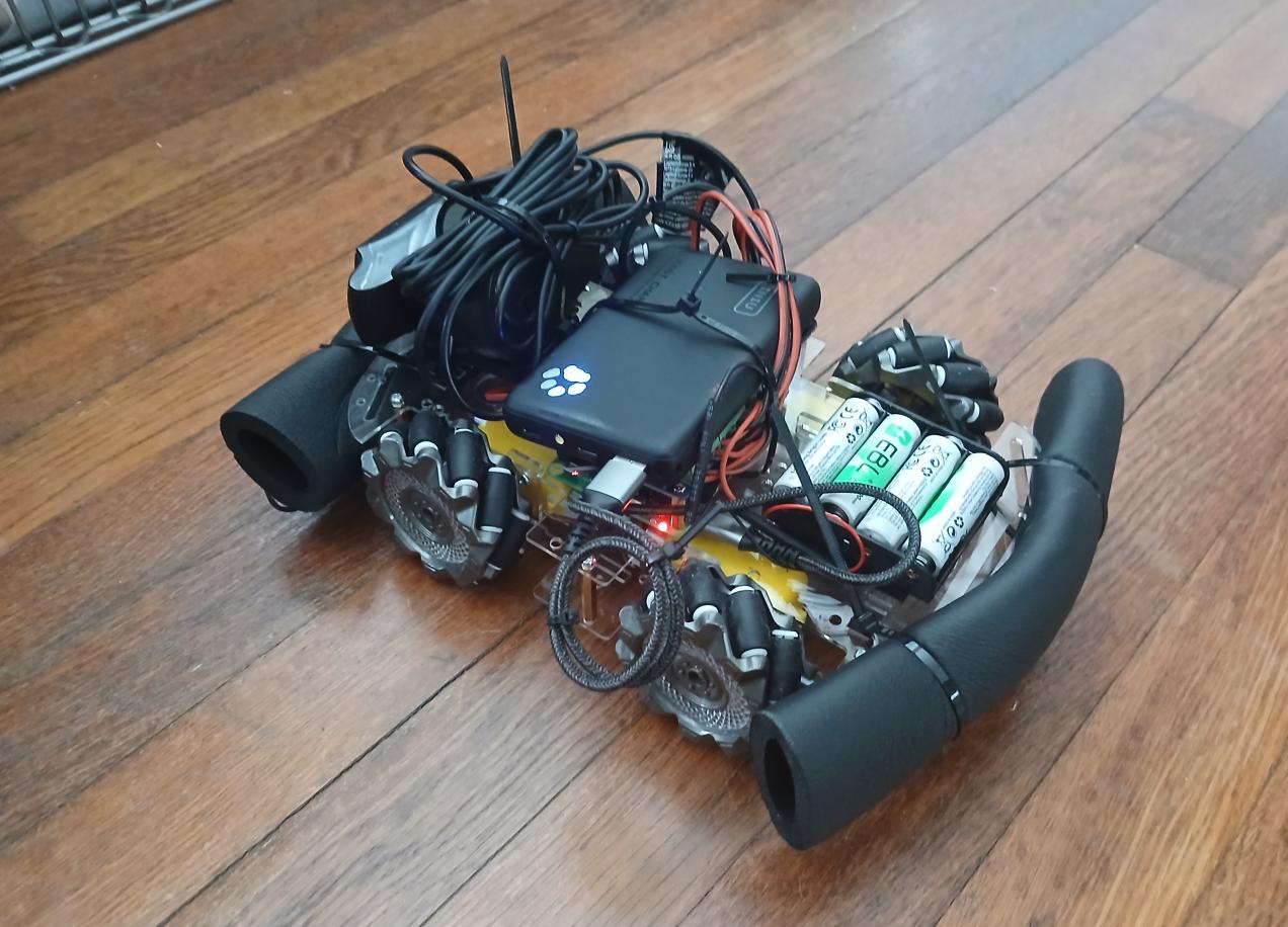 Small bot that moves pretty quick for its size and has pads so it doesn’t mess up your stuff.